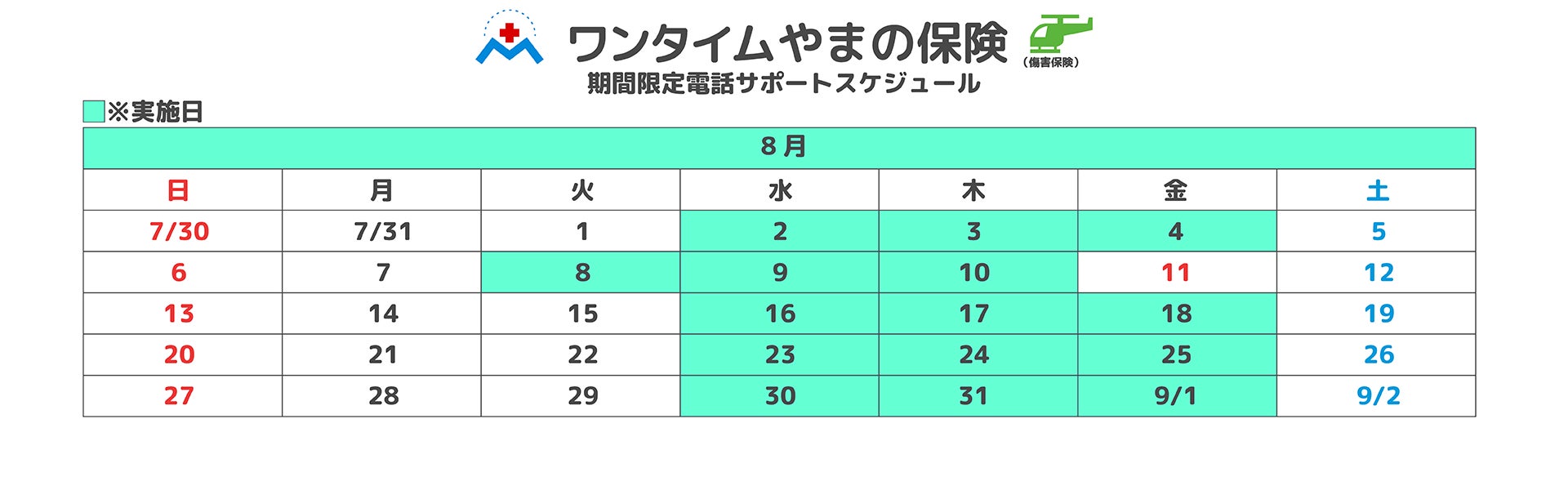『ワンタイムやまの保険』の「保険申込の電話サポート」(試験的)に関するおしらせ