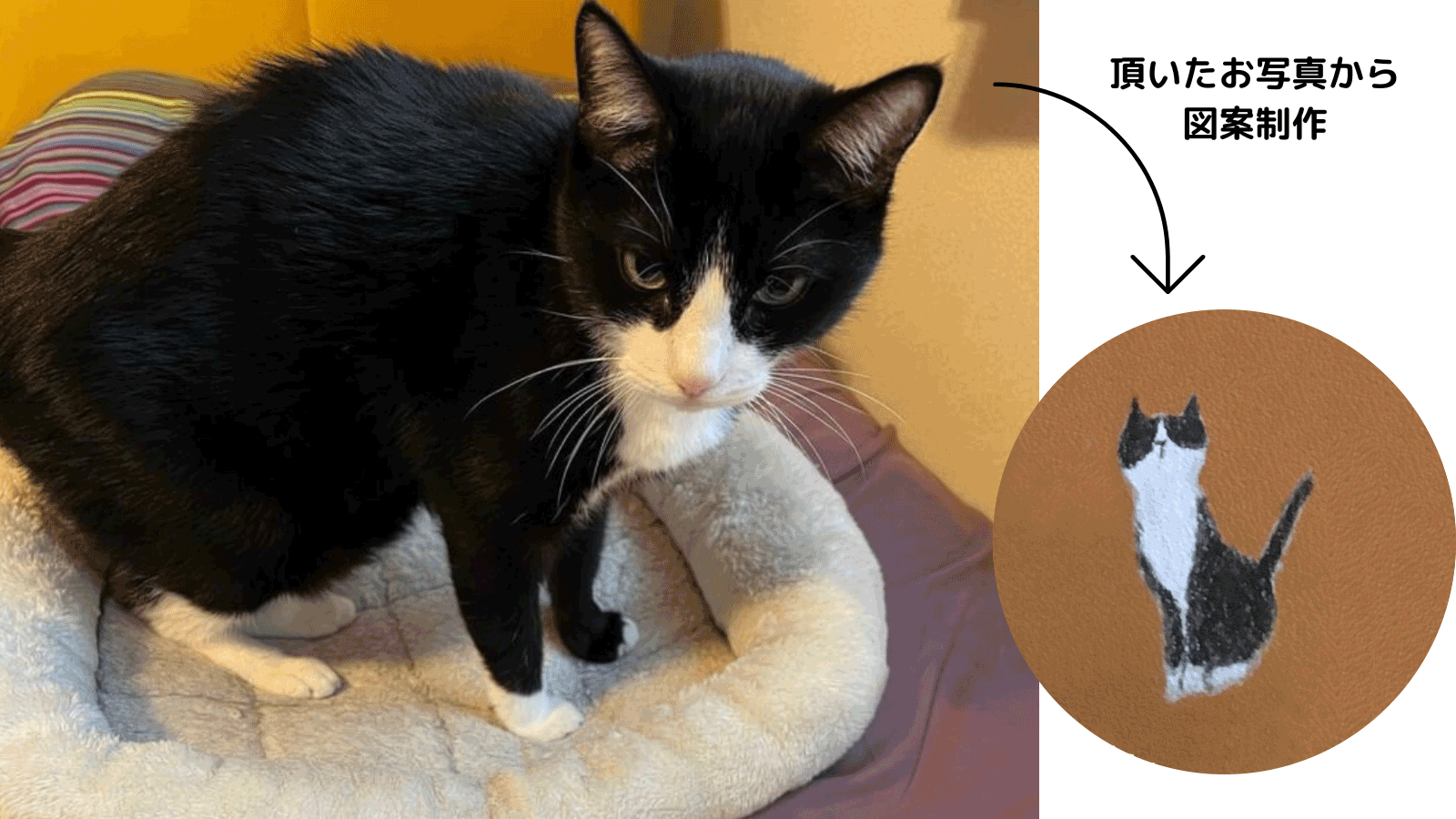 送って頂いた愛猫の写真を見て手描きする「愛猫アレンジオプション」も取り組み、プレゼントに使用する事や愛猫への思いのメッセージを読み、優しい心を感じ心温まる制作になりました。