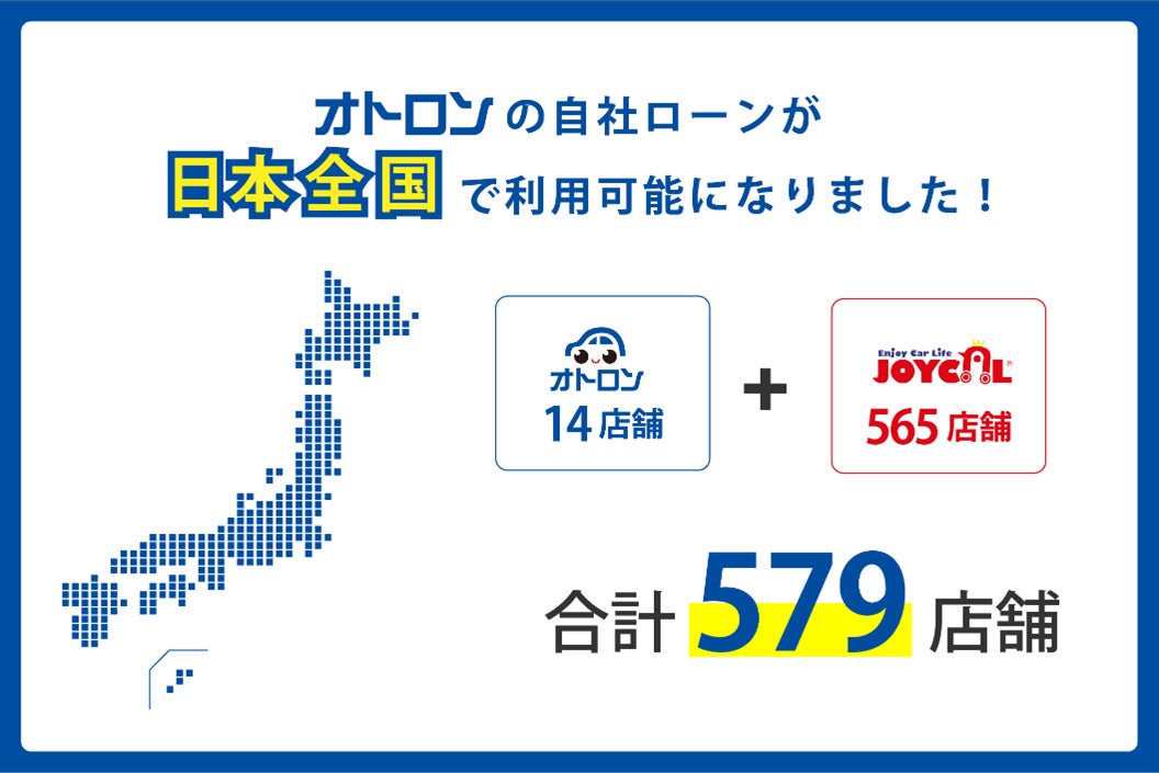これまでは、関東圏内に12店舗・東北地方に2店舗を出店しておりましたが、このたび全国に565店舗(2023年3月1日現在)を展開するジョイカルと提携することで、より多くのお客様に「オトロンの自社ローン」を手軽にご利用していただくことと納車後のアフターメンテナンス工場の充実と拡大が可能になりました。