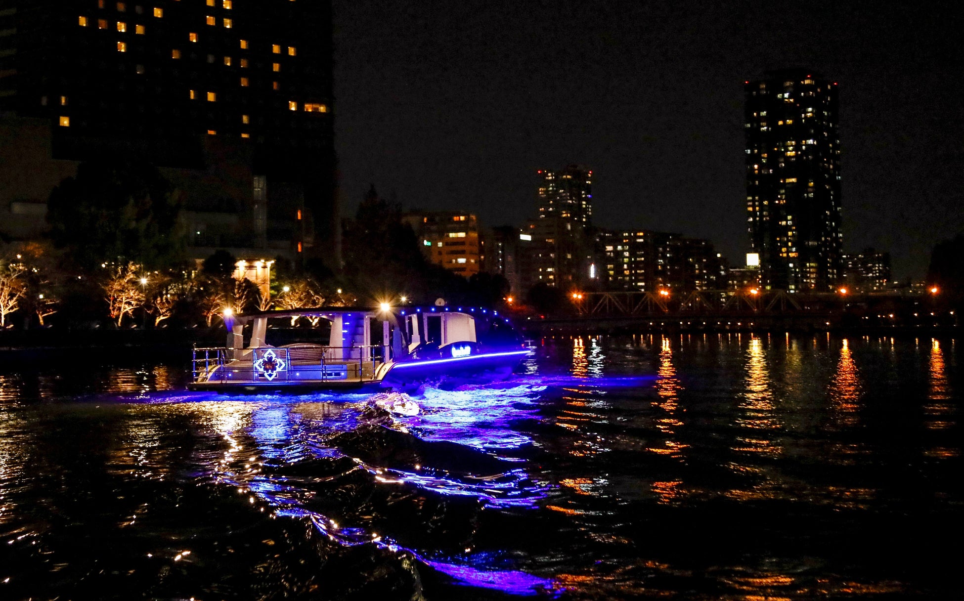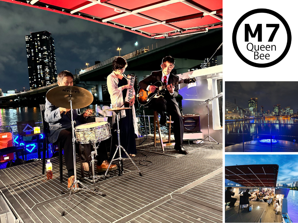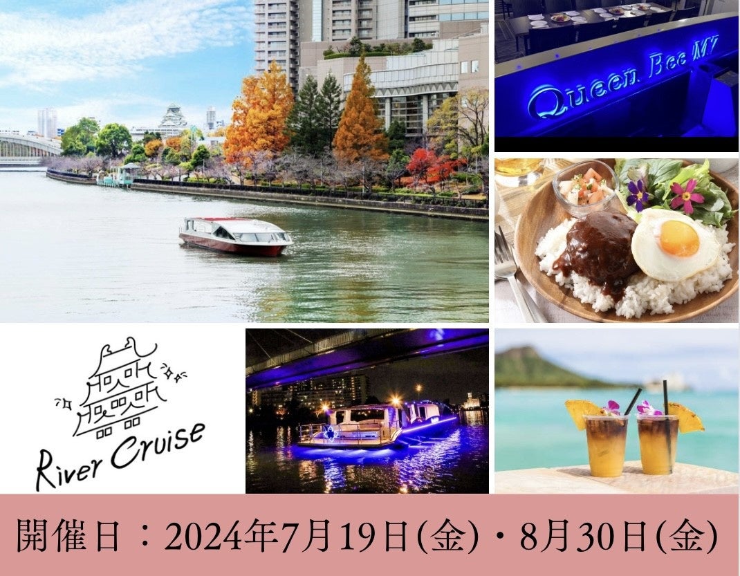 大阪の川を満喫!最新鋭の次世代EV(電気)船「Queen Bee M7」でリバークルーズが楽しめる「ハワイアン乗合いナイトクルーズ」を開催!