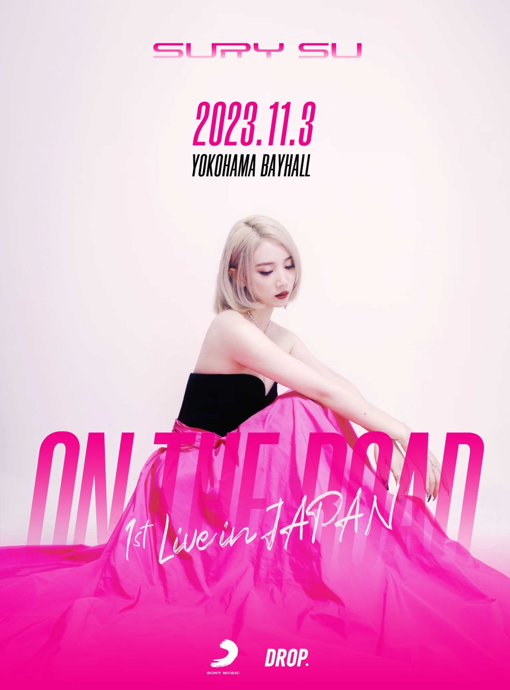 Sury Su|スー・ルイチー "On the Road" Exhibitionでは、スー・ルイチーのこれまでの活躍を写真などで振り返ります。また、日本ライブと連動した取り組みや日本オリジナルグッズの販売等も予定しています。なお、ポップアップショップの詳細は、X(旧Twitter)DROPエンタメ @drp_asia 等でお知らせ予定です。