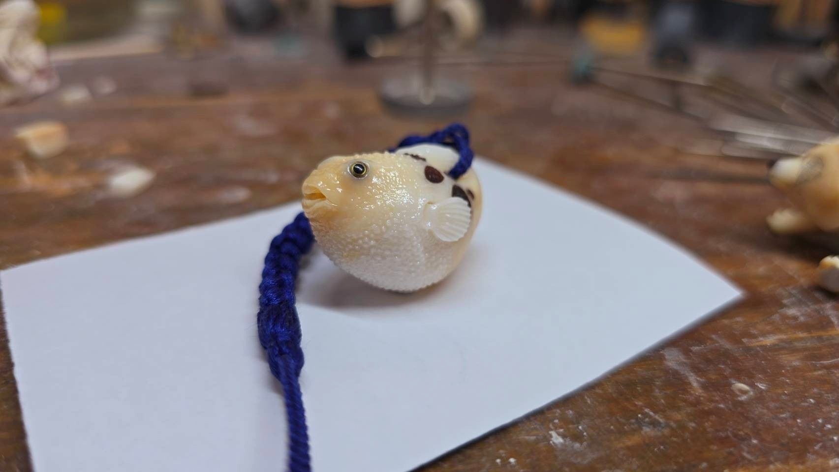 また、浜名湖で漁獲される『ドウマンガニ』は数が少なく、国内で漁獲高があるのは浜名湖のほかは高知県と沖縄県くらいと言われております。浜松と高知県の共通点から『ドウマンガニ』の根付も山本達也氏が制作いたしました。