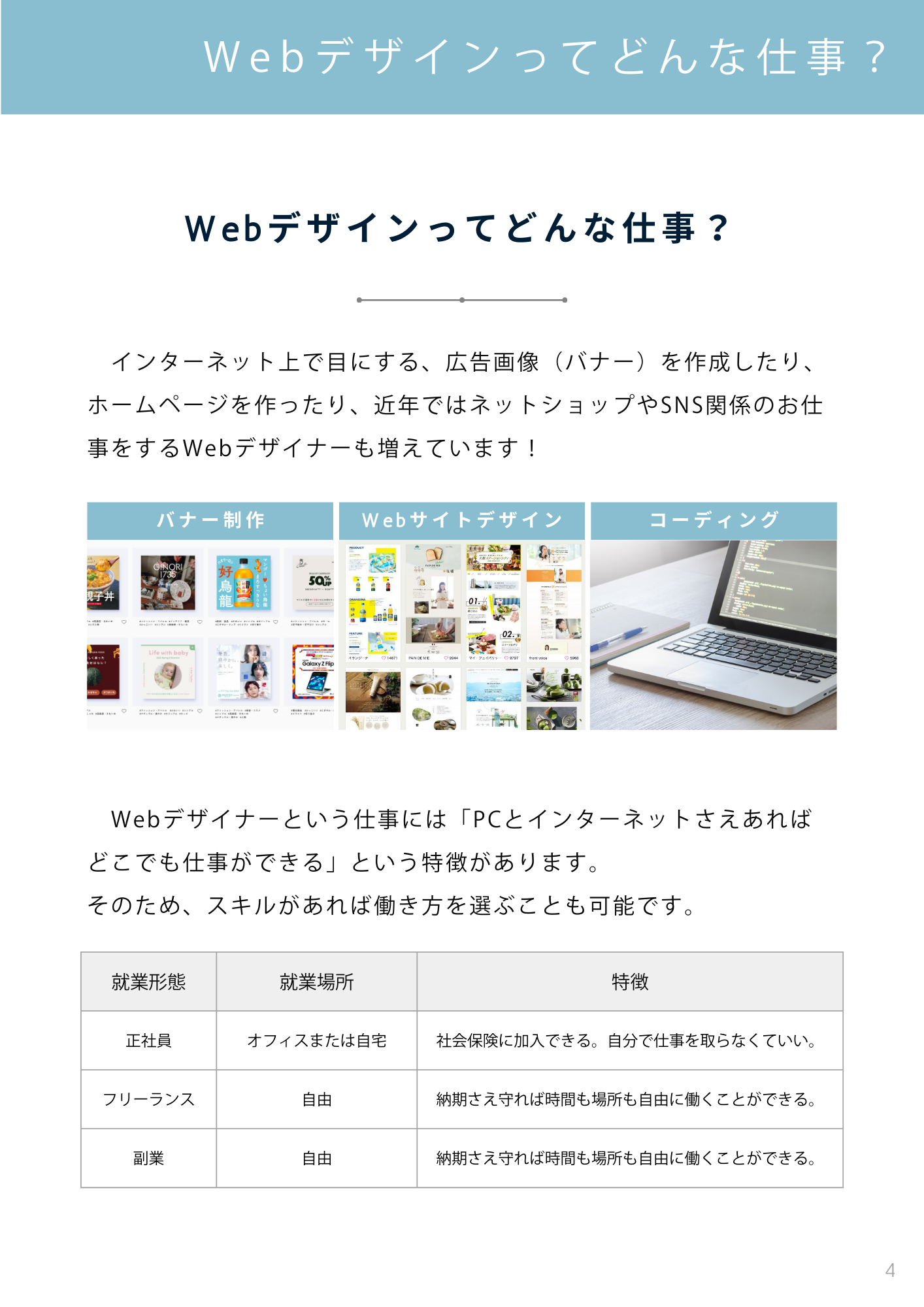 Webデザインの仕事について学び、無料のデザインソフトCanvaを使用して、実際にプロからデザインを学びました。