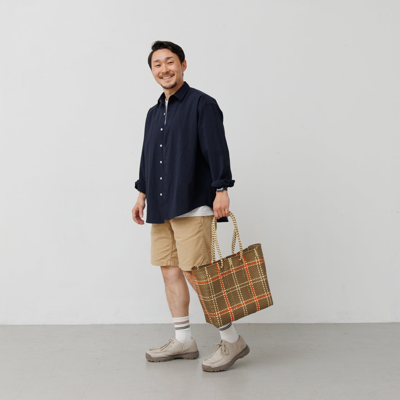 メンズファッション小物・夏のかごバッグとして、色でファッションを楽しんでみてはいかがでしょうか。