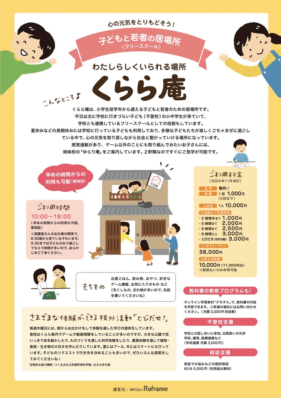 11月13日(水)16日(土)の2日間、不登校支援、子どもの居場所づくりをしているNPO法人Reframeが、小中高校生の保護者対象に、無料で「なんでも育児相談会」を開催!