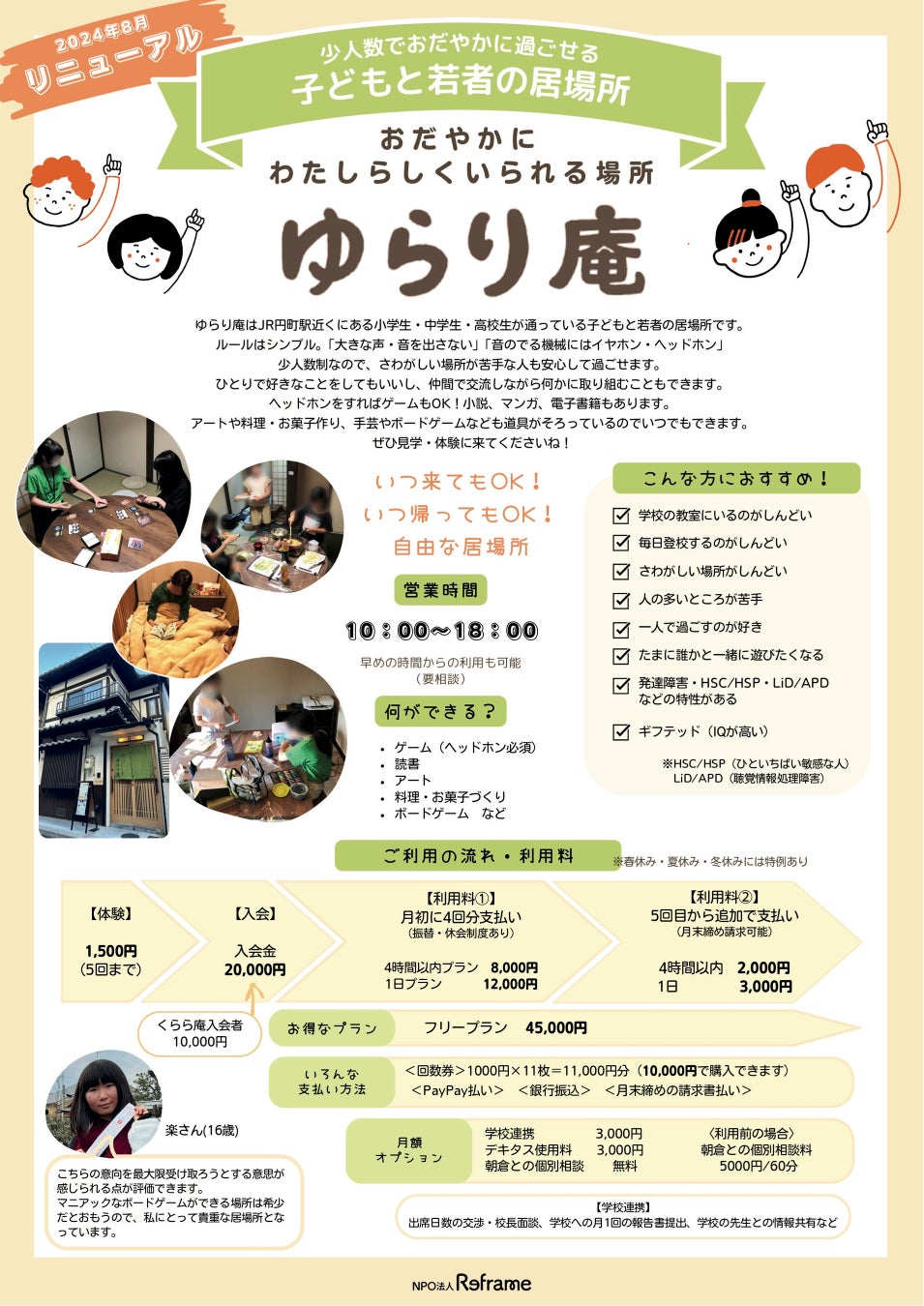 代表の朝倉、ゆらり庵の磯の2人で、保護者の無料相談会を開催します。