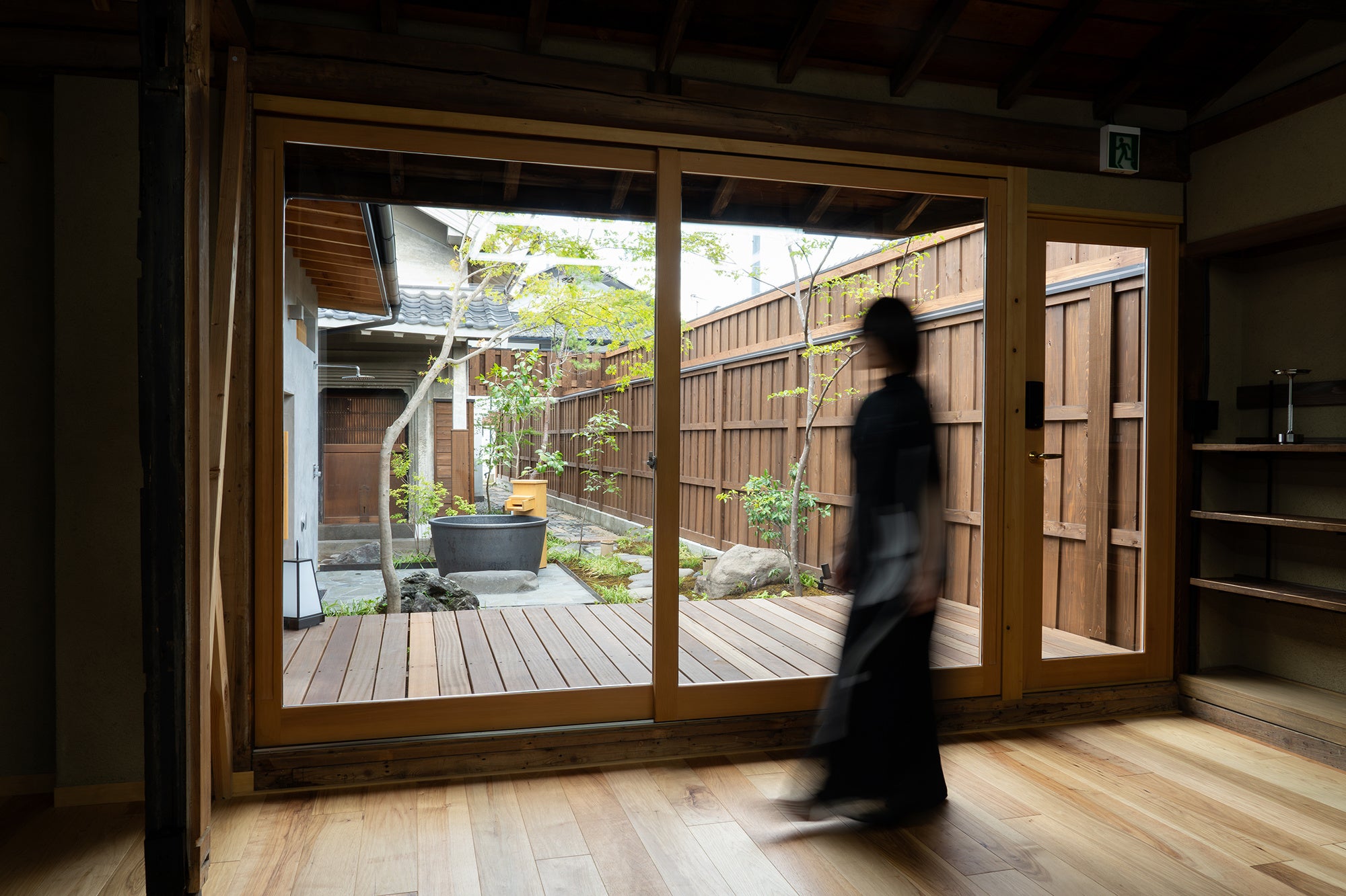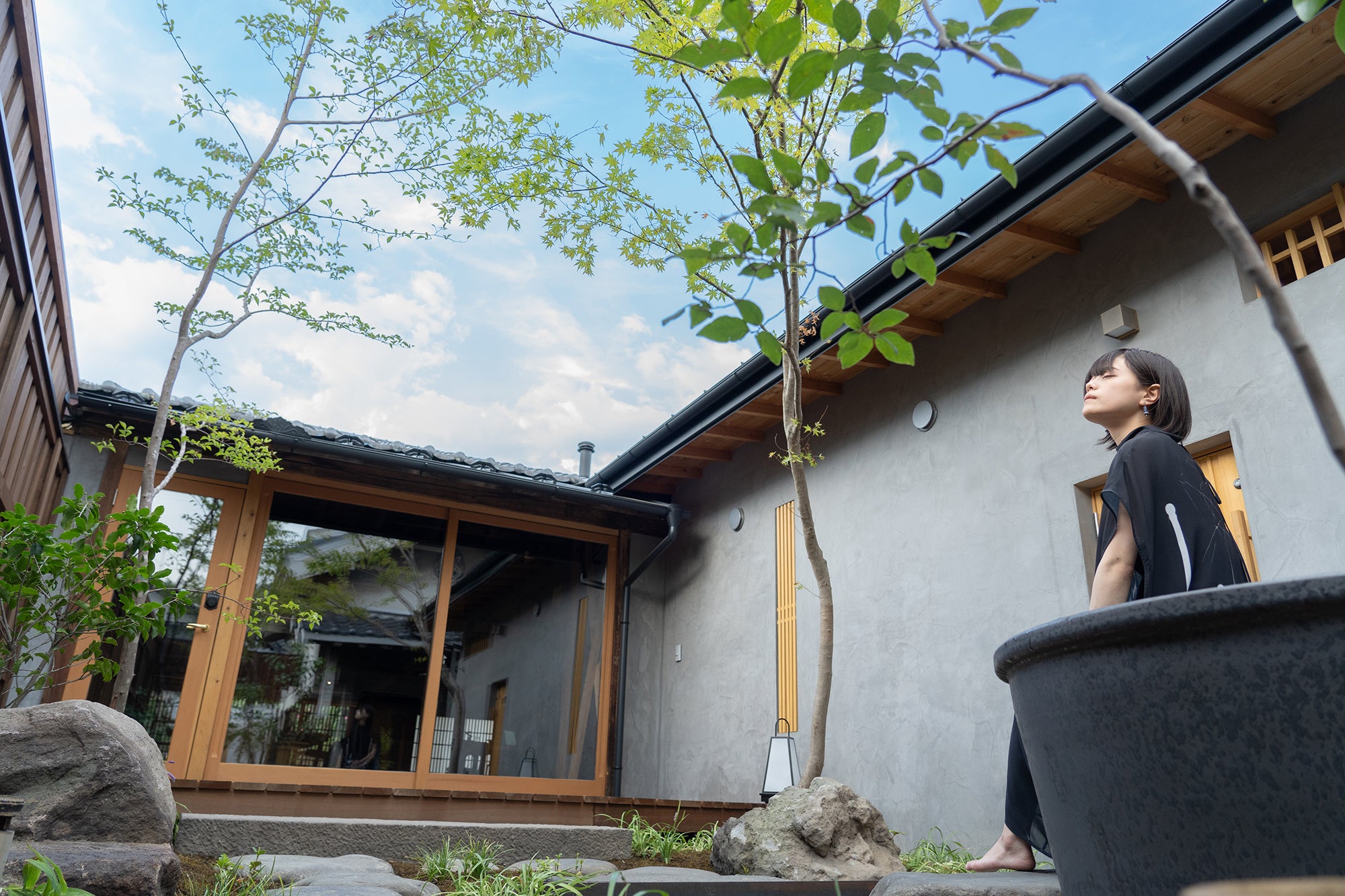 サウナは、プライベート空間で周りを気にせずセルフロウリュを思う存分できます。中庭に出れば信楽焼の水風呂とウッドデッキがあり、四季を感じる美しい庭を眺めながら安らぐことができます。