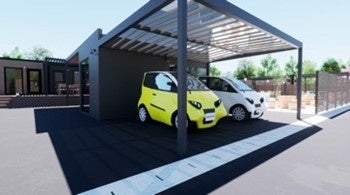 上記のDX技術とGX技術のみならず、防災レジリエンス性能も確保。お住まいになる方々と地域にも安心をご提供します。電気自動車と住まいの電気を繋ぐV2Hシステムと専用蓄電池の導入により、災害時の非常用電力を確保し、ライフラインが途絶えたり避難困難な際にも自立した生活を可能とします。家庭菜園や雨水タンクなど自給自足アイテムも選べます。複合災害により地域での生活持続が難しくなった際には生活拠点の移動も可能です。牽引移動できるトレーラーハウスタイプとクレーン移動できる据置設置タイプを選択できます。