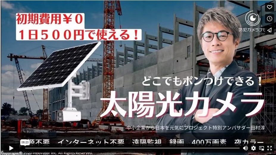 「防犯カメラナビ」を運営する株式会社イノベーター(所在地:東京都渋谷区、代表取締役 河野 靖喜)は、ソーラーパネルと4G通信機能を搭載し、電源不要・インターネット回線不要で遠隔監視できるで新しい屋外防犯カメラ「太陽光カメラ」の提供・販売を2023年2月より開始しました。