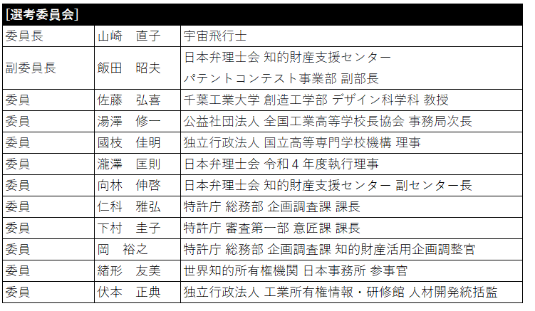このコンテストで優秀賞に選出された応募作品は、特許権および意匠権の出願支援対象となり、日本弁理士会の