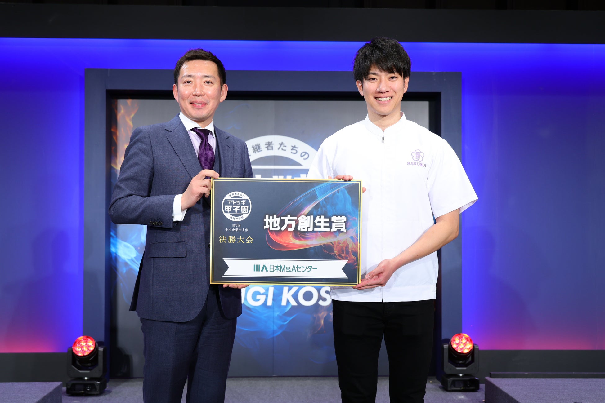 「アトツギ甲子園」は、中小企業庁が主催する全国規模のビジネスコンテストで、中小企業・小規模事業者の事業承継を控える後継者が、既存の経営資源を活かした新規事業アイデアを発表するピッチイベントです。本大会には全国から多くの若手後継者が参加。第5回大会は、全国189名のエントリーの中、全国6ブロックの地方予選大会を勝ち抜いた合計18名の後継者が決勝大会(ファイナル)に参加。決勝大会に出場したファイナリスト18名に対する最終審査を経て、経済産業大臣賞、中小企業庁長官賞、優秀賞、企業特別賞が決定されました。