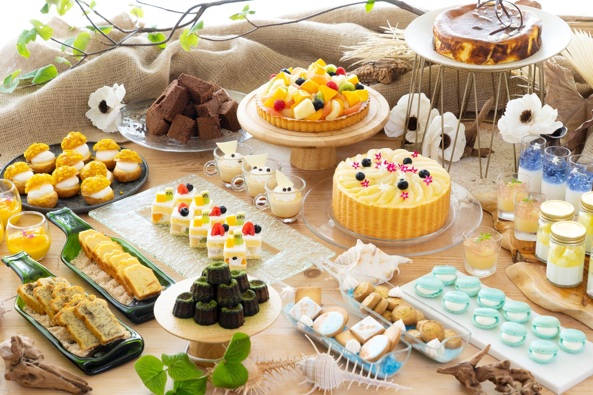 ブッフェ内容: マンゴーや白桃など旬のフルーツを使用したスイーツ15種、フード 5種