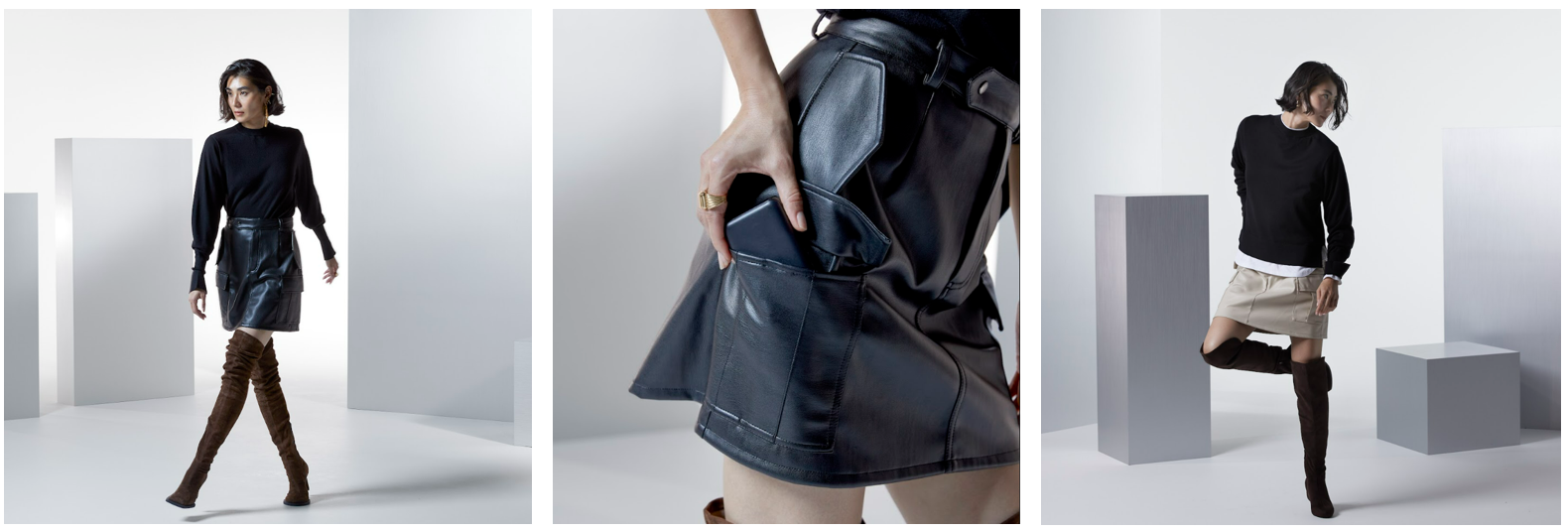 TEECHIのフラッグシップモデル「TMO」シリーズに、カーゴミニスカートが登場。インナーパンツのサイドとヒップに装備したウェアラブルヒーターが、寒い季節も芯から体を温めてくれます。大人の着こなしは、素材の上質感を際立たせて。