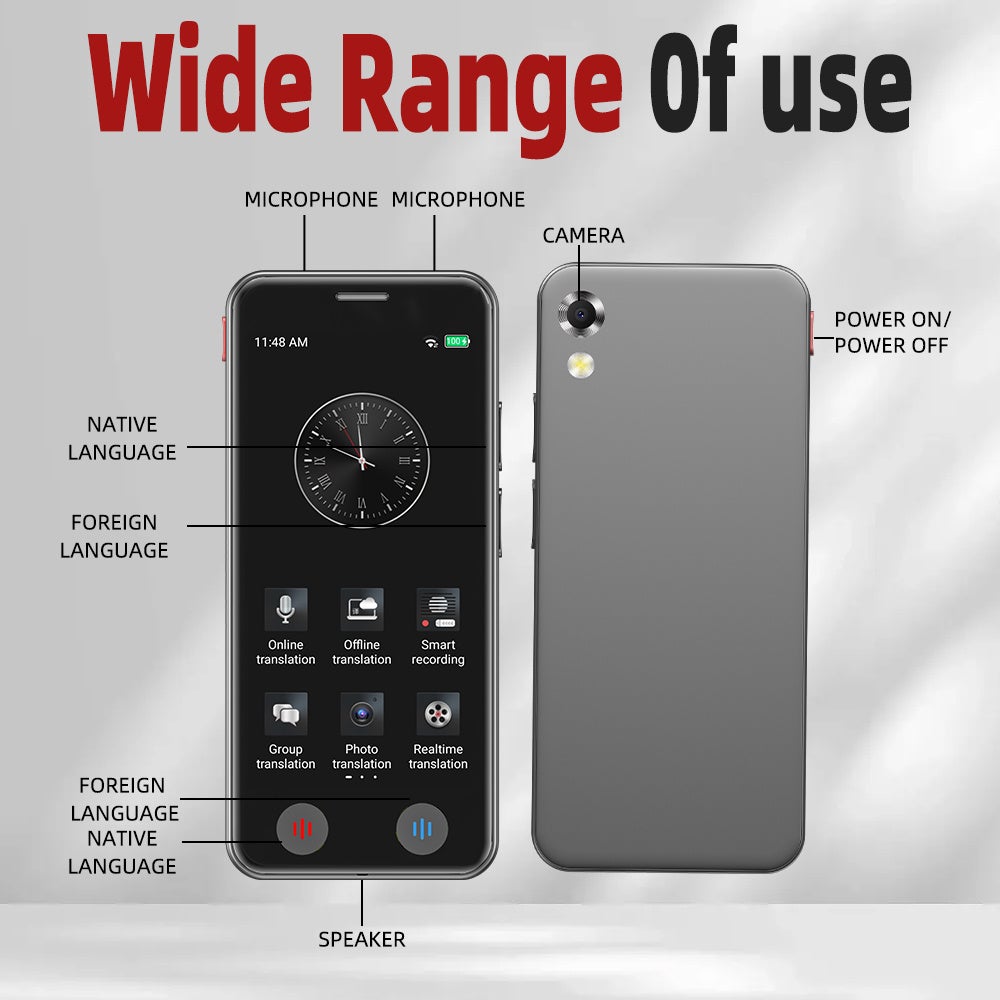 AI翻訳機メーカーが開発した進化版翻訳機。139もの言語を翻訳可能で、オフライン翻訳にも対応。スマホと併用しながら仕事や旅行などあらゆるシーンで使っていただけます。また、デザインにもこだわり、スマホのようにタッチ操作で説明書がなくても感覚で操作ができる仕様になっています!