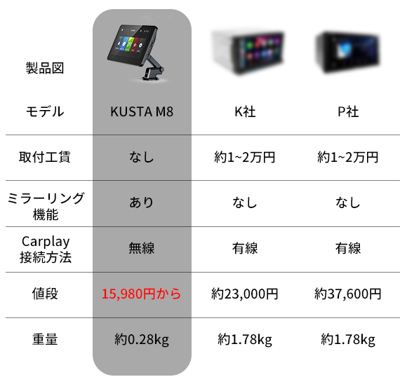 <1万円台から>1日で目標達成率1000%突破!『Apple CarPlay/Android Auto対応オンダッシュ型ディスプレイオーディオ「KUSTA M8」』絶賛クラウドファンディング開催中!