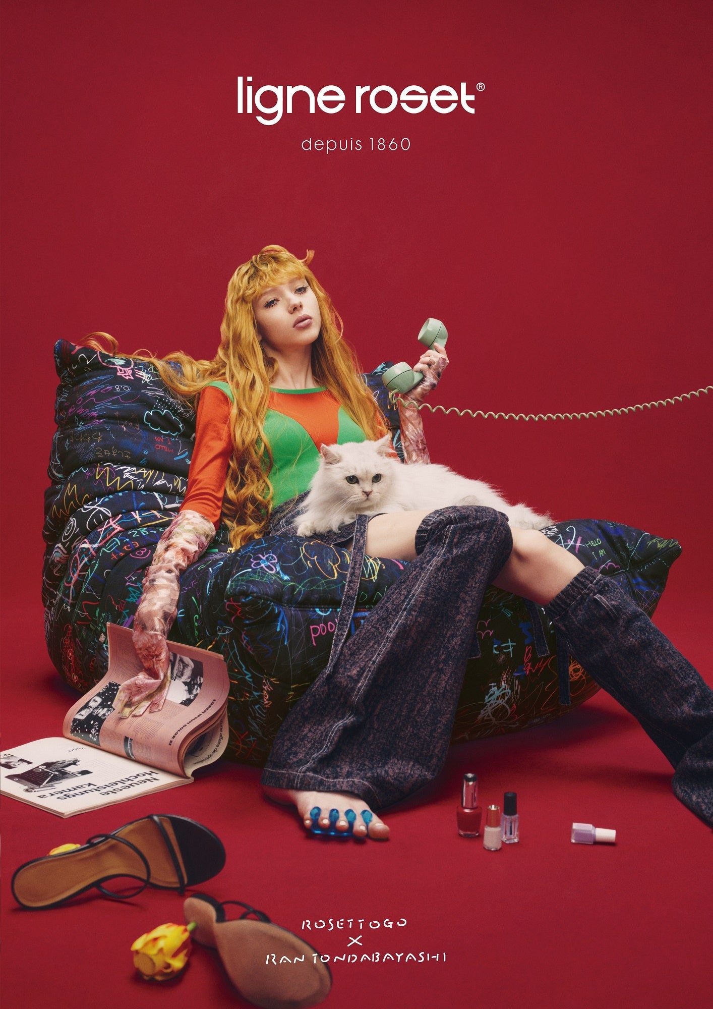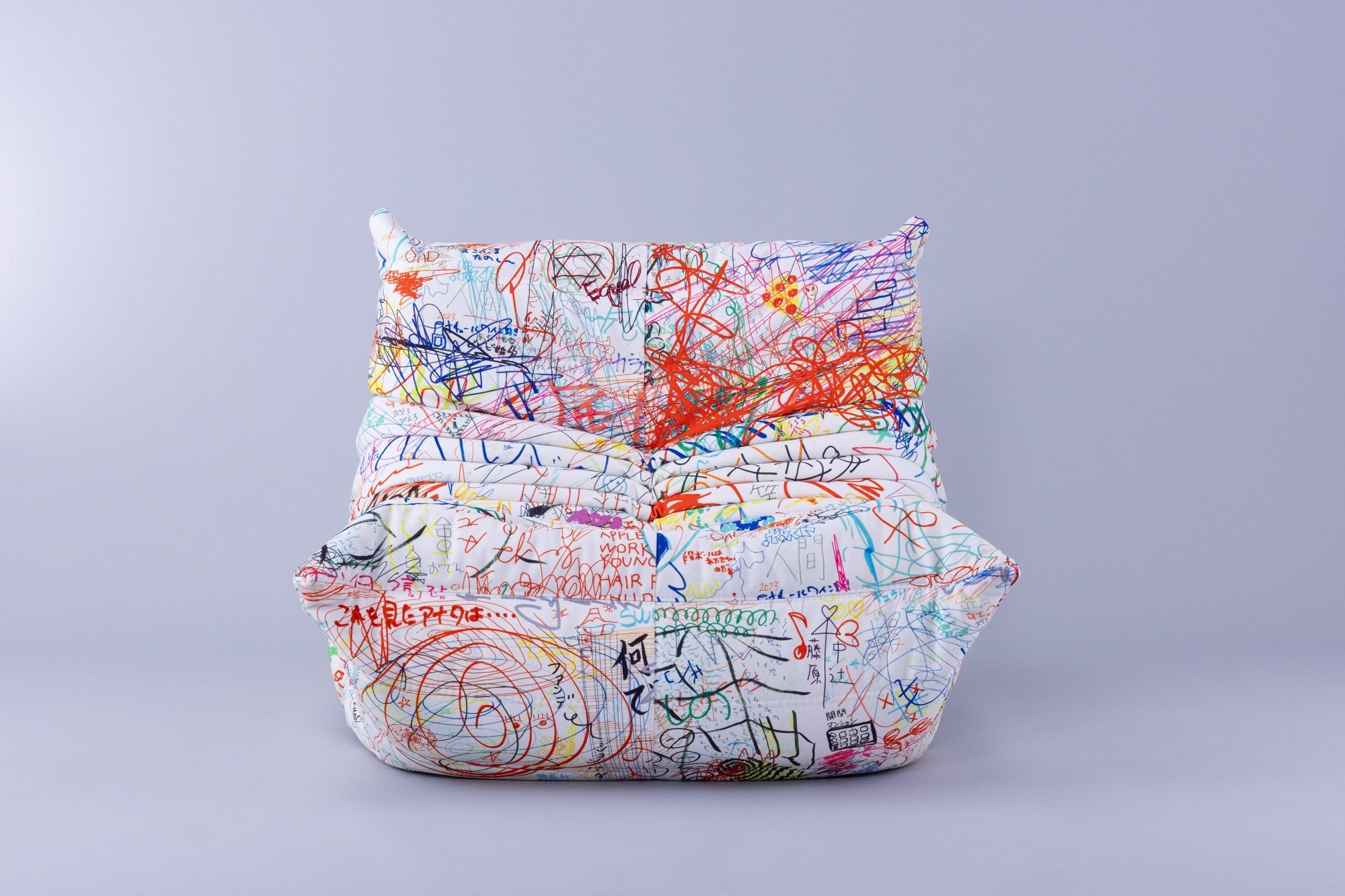 ロゼトーゴの愛用者であり、著名なアーティストたちの作品のアートディレクションを手掛けるとんだ林蘭が、初めてロゼトーゴのソファをデザイン。ロゼトーゴをキャンバスに、文房具コーナーに置かれた試し書きをモチーフに生まれた限定生地は、『TAMESHIGAKI』と名付けられました。ロゼトーゴが日本の著名人とコラボするのは今回が初の試みです。日本人アートディレクターによる日本オリジナルのアーティスティックファブリック『TAMESHIGAKI』。世界約70ヵ国で展開しているリーン・ロゼブランドがライセンス契約を結んでいる唯一の国、日本でしか実現できない日本オリジナルアートのソファです。