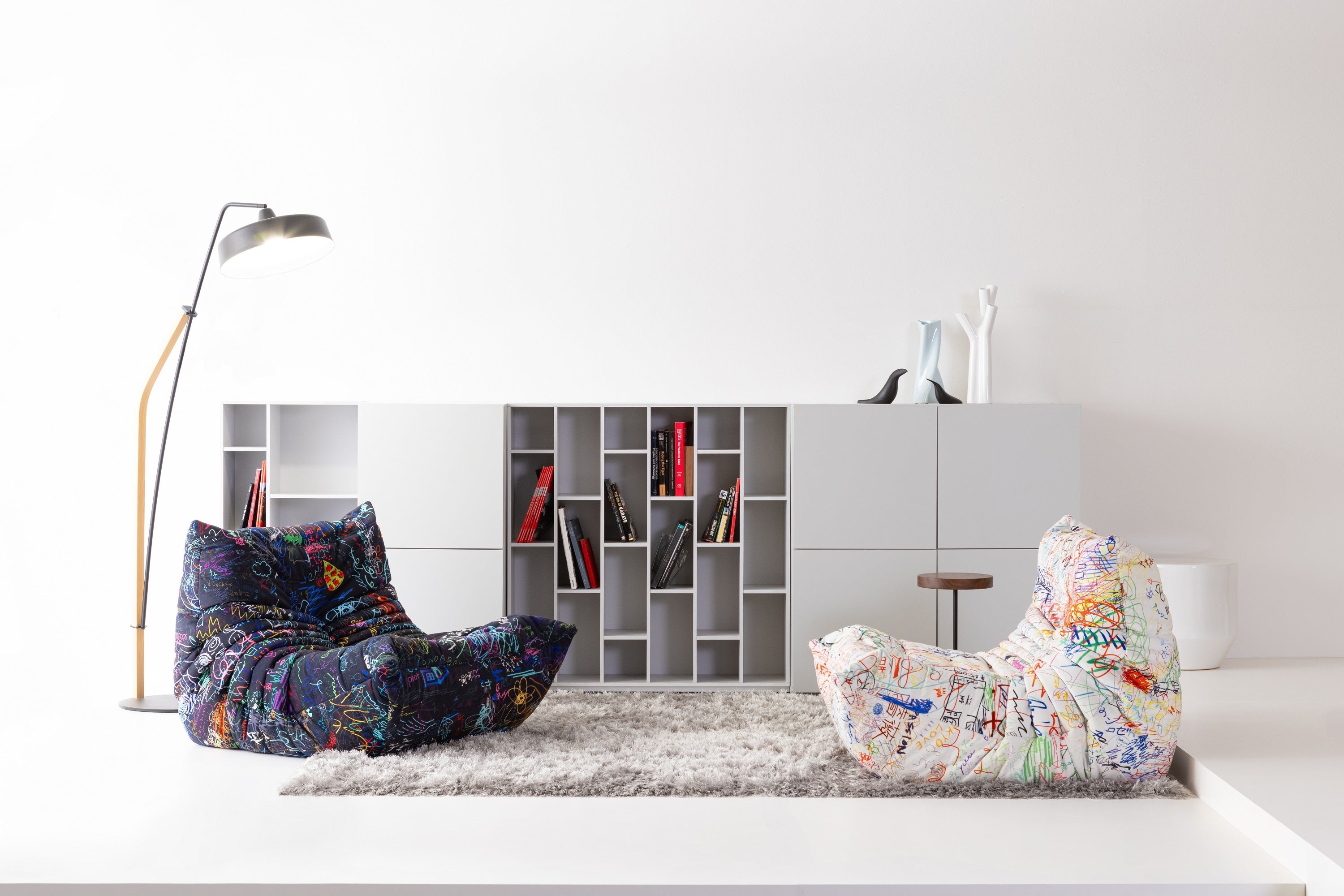 様々なライフスタイルに対応できるように1人掛けから3人掛けまで、また肘付きソファやコーナー、ラウンジなど多様なサイズ展開もしております。2007年には、キッズ⽤のミニサイズも追加されました。発売から50年を超えても、常にコンテンポラリーなイメージを持つ奇跡のソファで、そのソフトでプリーツがついたようなデザインは2世代を魅了し、今も変わらず愛されています。発売50周年を迎え、これからもプレミアムな限定品や特別なイベントを通じて、⽇本中のお客様と、この喜びを分かち合いたいと願っています。