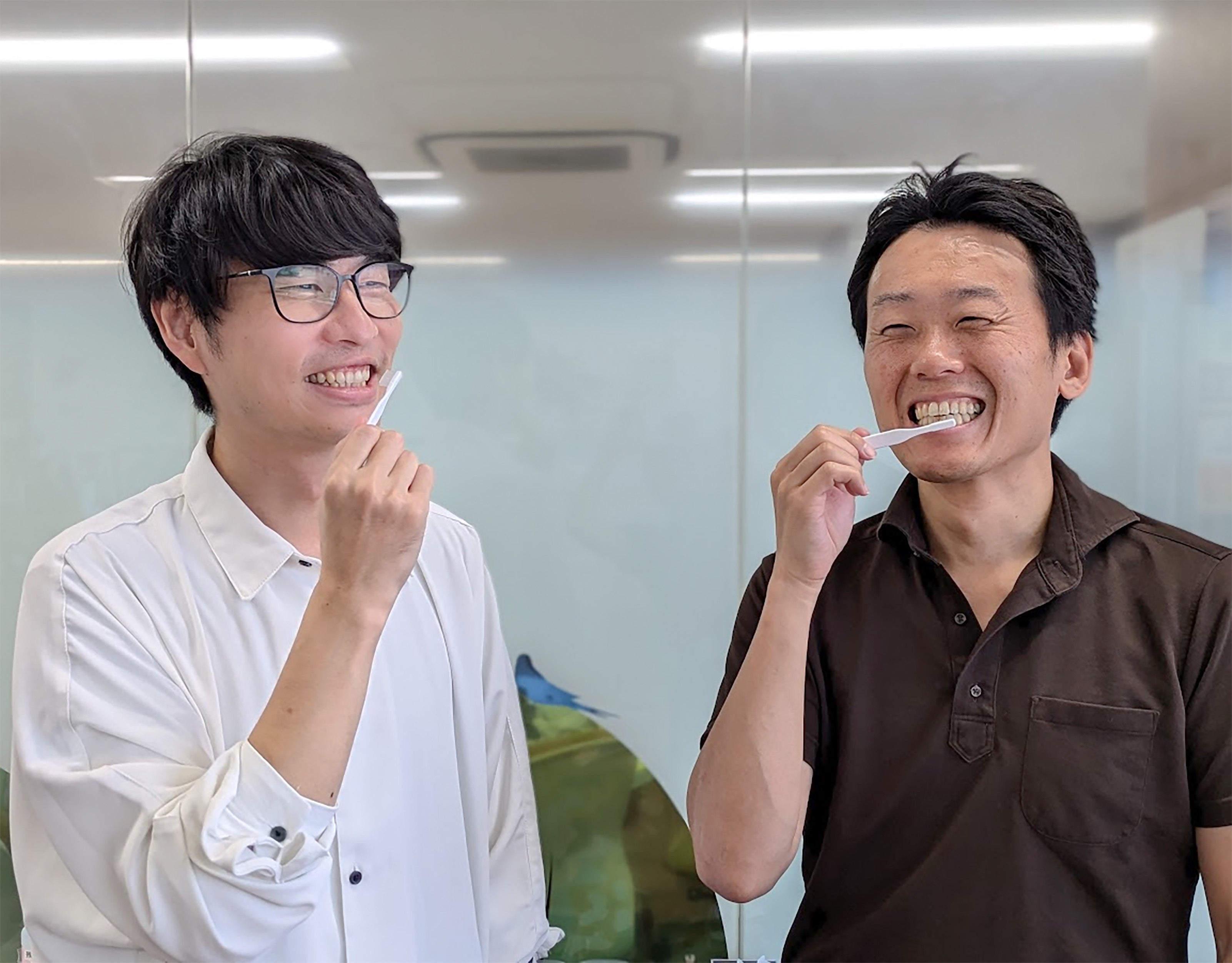 ご利用者様からは「指を怪我してしまう恐れがあり、これで安心して歯磨きの介助ができます」、「水道は当分の間復旧が望めません。利用者の口腔ケアが行き届かない状況なので、無水ハブラシはしっかりした製品でたいへん助かります」といったお声をいただきました。