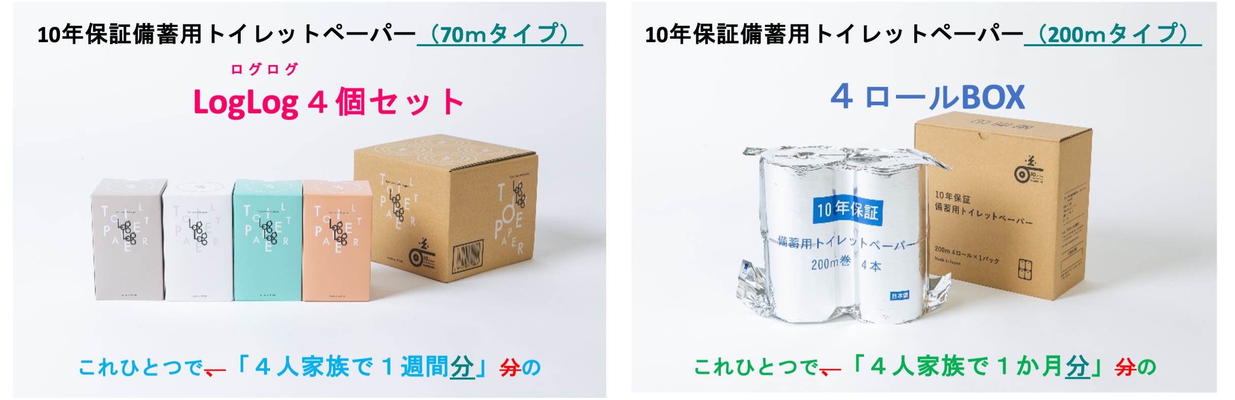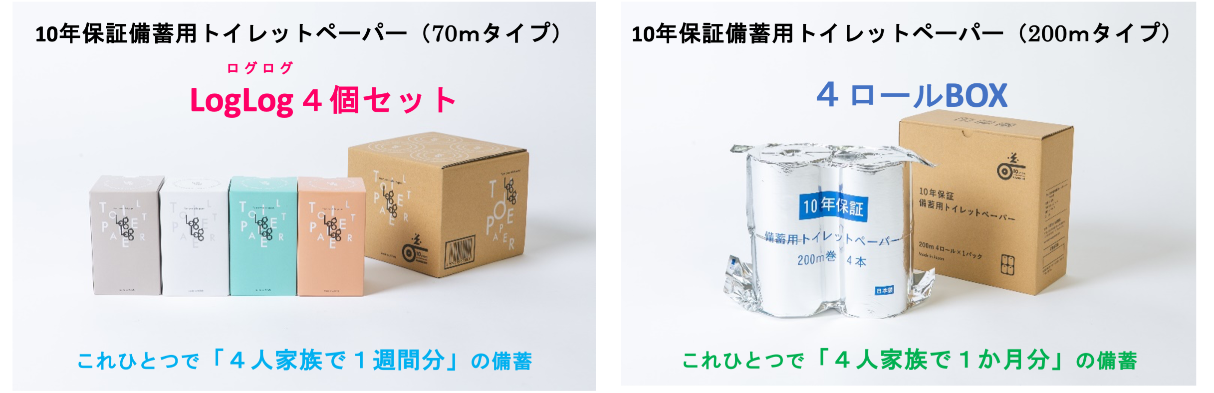 両製品ともに「より家族単位で備蓄しやすいように」という想いを込めて開発し、LogLog4個セットは「4人家族で1週間」、4ロールBOXは「4人家族で1か月」の備蓄が可能となっております。