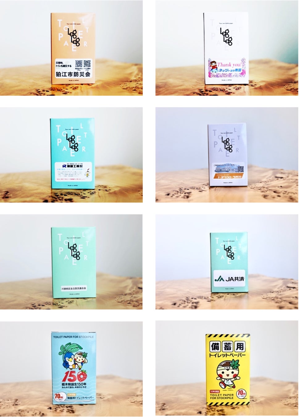 LogLogは2022年10月に発売して以降、既に多くの自治体・企業へ納品しています。使用用途として、備蓄用はもちろん、防災の日(9月1日)に合わせた自治体の防災イベントノベルティ、一般企業においては、ご来店の御礼ノベルティや年始挨拶回り用の粗品等、さまざまです。LogLog既製箱のままでの納品はもちろん、添付画像のようにオリジナルラベルシールを貼付し企業名・自治体名を名入れすることが可能です。またオリジナルBOXとして、5面(天面側面)にフルオリジナルデザイン仕様とすることもできます。