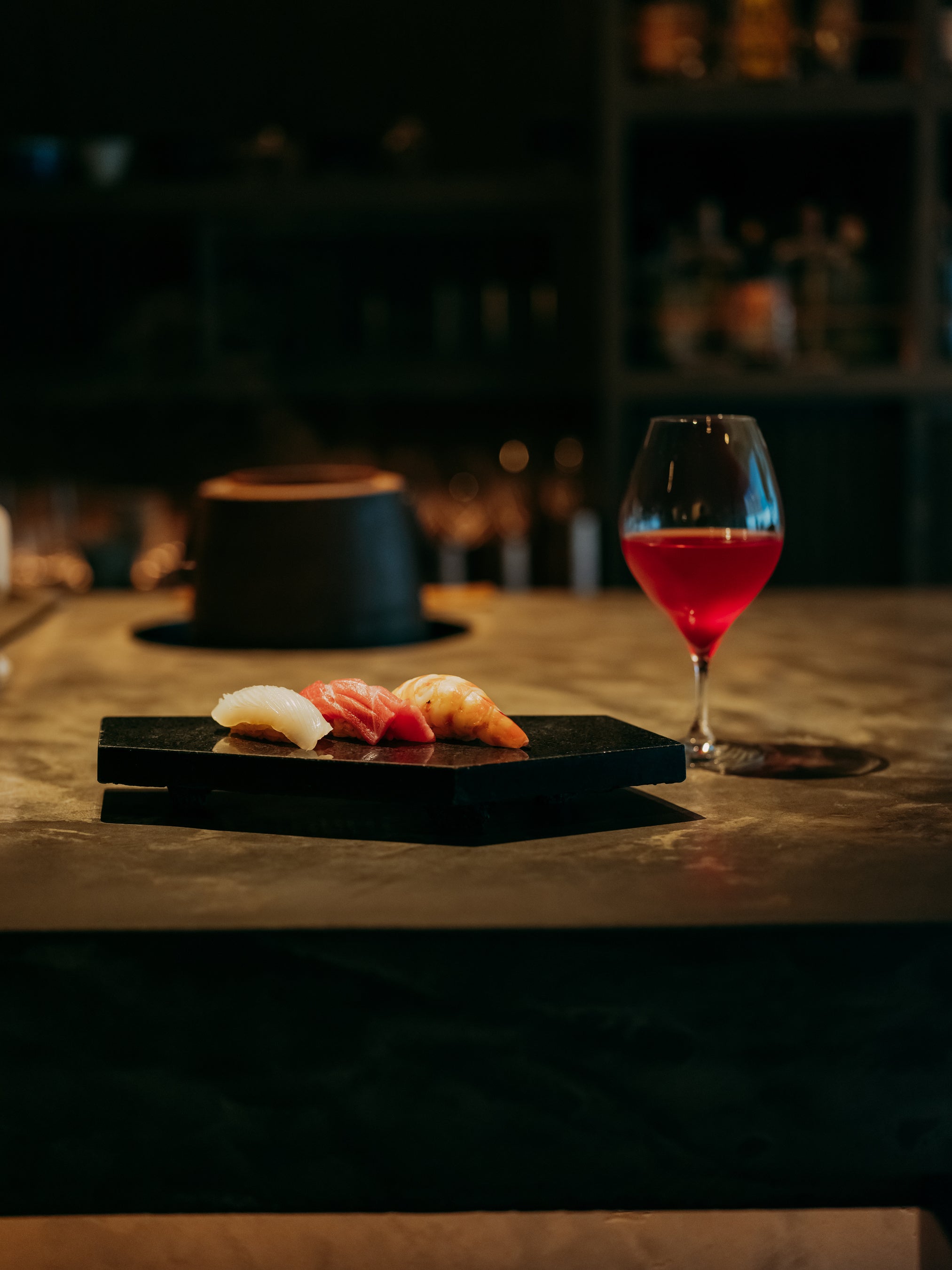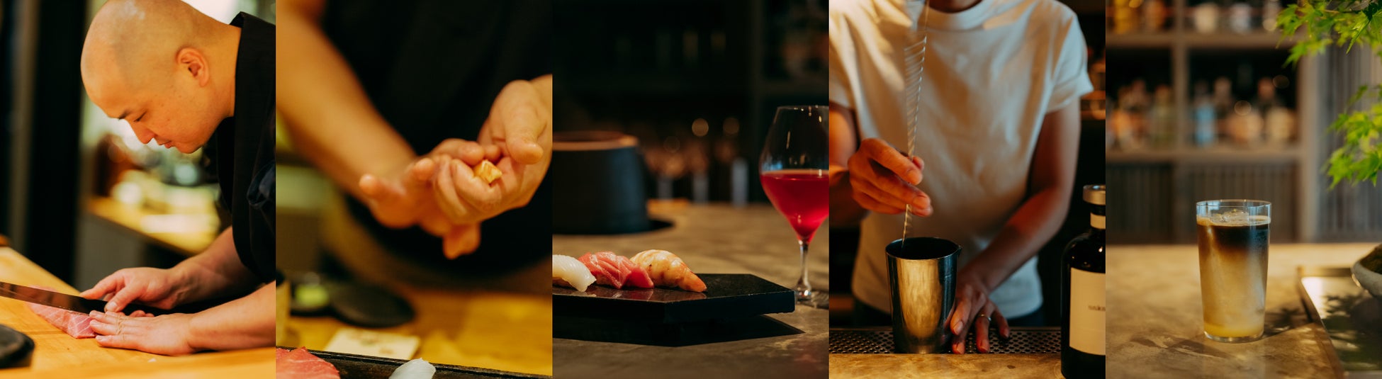 「今回のお鮨とのコラボレーションでは、お鮨の味を最大限に引き立てるため、食中酒となるカクテルをシンプルに仕上げました。unknownのシグニチャーであるお茶を使用したカクテルや、白ワインや赤ワインをイメージし、霊芝のフレーバーを活かしたカクテルを提供します。」