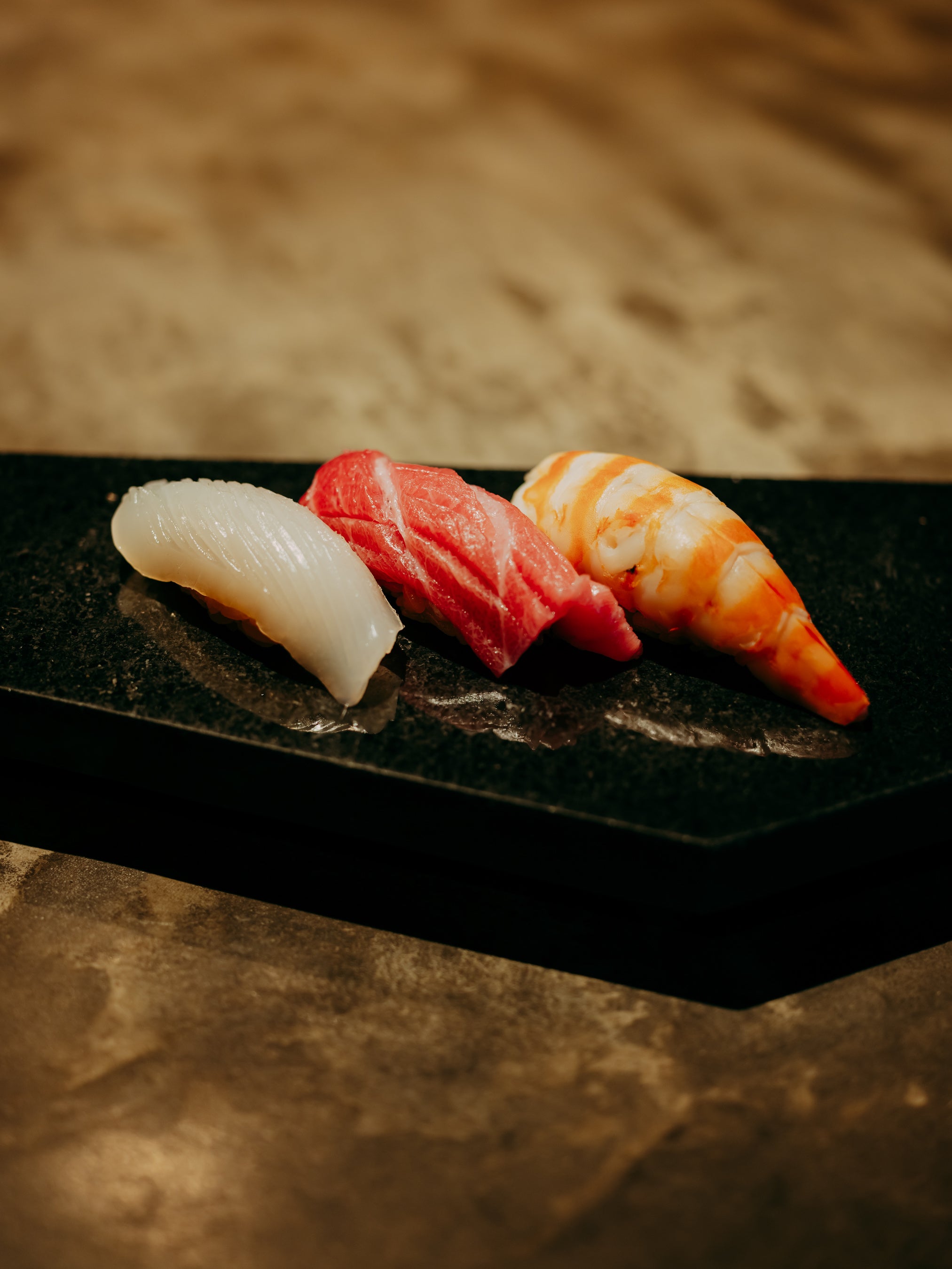 「鮨 心白」の石田大樹氏が握る鮨3貫セットと太巻きに加え、「unknown」の大場文武氏がREISHI GINを使って創作する食中酒カクテル3種をご用意。鮨とスピリッツの新しい食体験をお楽しみください。