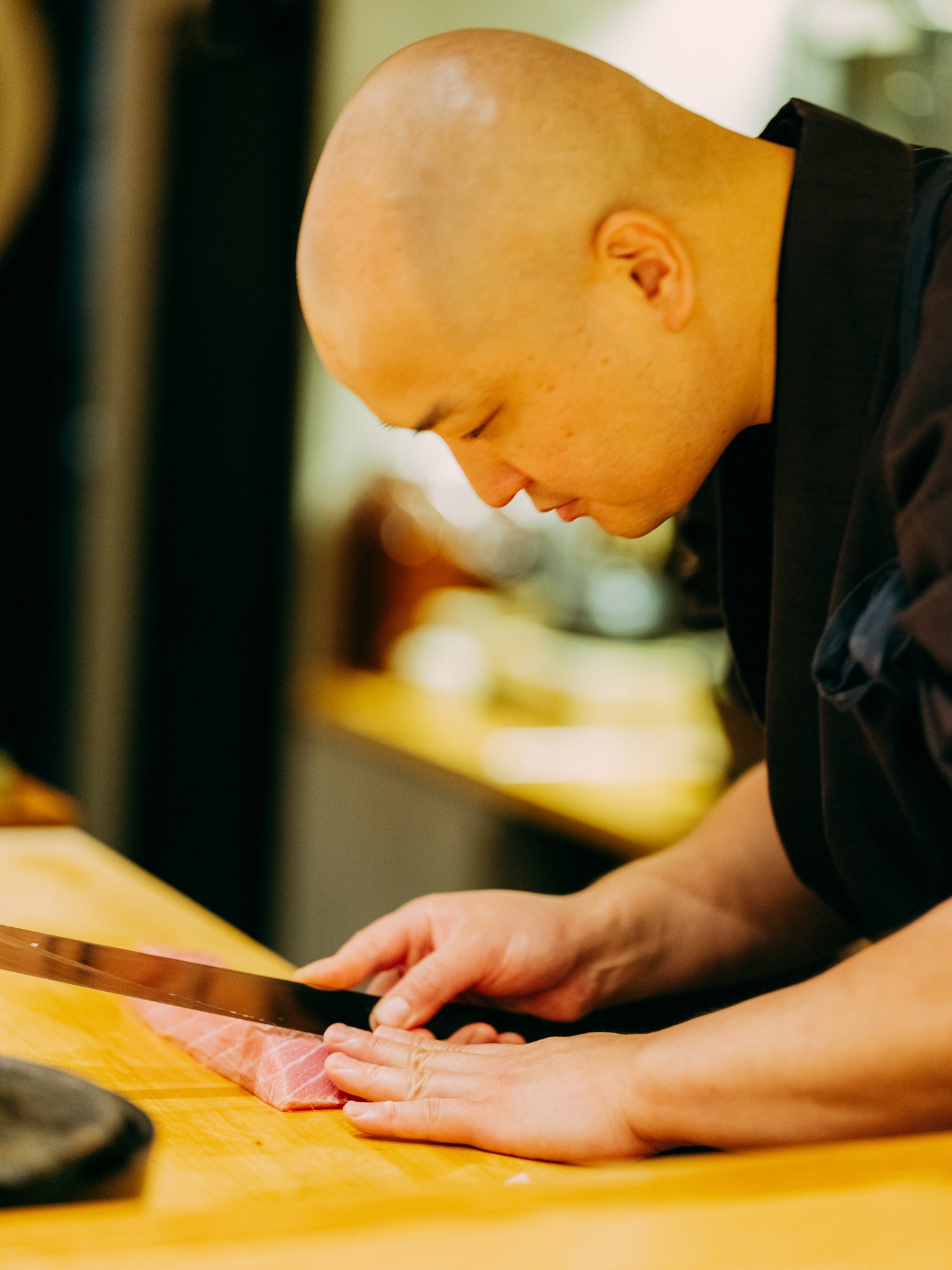 店主・石田大樹氏は、日本料理の名店『青山えさき』、『銀座 くろ寿』、恵比寿『幸せ三昧』などで修行を積み、2014年に独立開業。食材はすべて現地の生産者や漁師と直接やり取りを行い、選び抜かれた逸材だけを産地から直送で仕入れています。厳選された素材から生まれる鮨をはじめとする日本料理の数々と、200種を超える豊富な日本酒との融合。さらに、クラフトビールや和茶も揃え、さまざまなマリアージュをお楽しみいただけます。