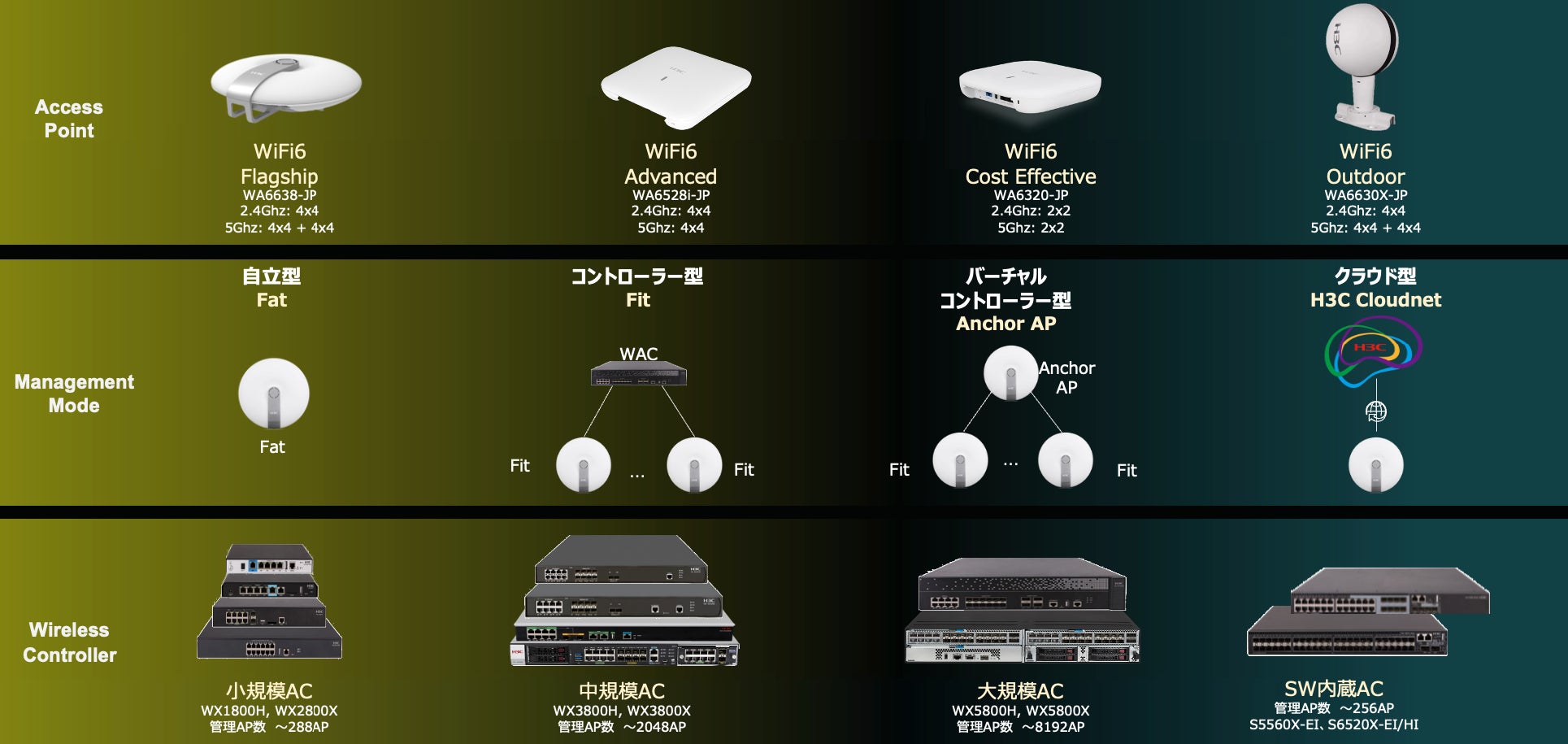 日本向けに4種類のAPを用意しており、ワイヤレスANコントローラも小規模から大規模までラインアップされています。