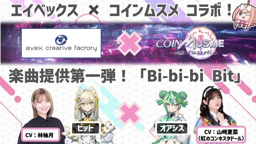 ブロックチェーンゲーム「コインムスメ」の楽曲をエイベックス・クリエイティヴ・ファクトリーが提供することを発表。第一弾テーマソング「Bi-bi-bi Bit」のMVを公開。