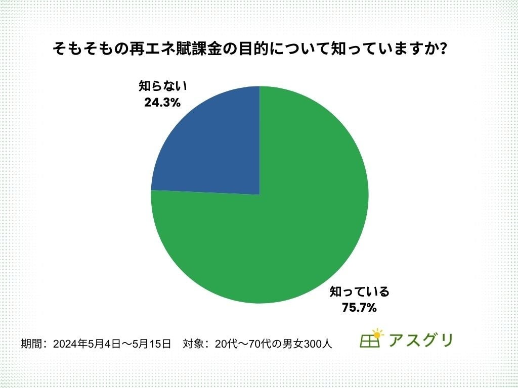 このたびアスグリでは全国の男女300名を対象に、「再エネ賦課金(再生可能エネルギー発電促進賦課金)」についてのアンケートをおこないました。