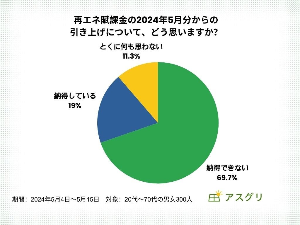 再エネ賦課金の値上げ「納得できない」69.7%|全国300名に再生可能エネルギー発電促進賦課金に関するアンケートを実施