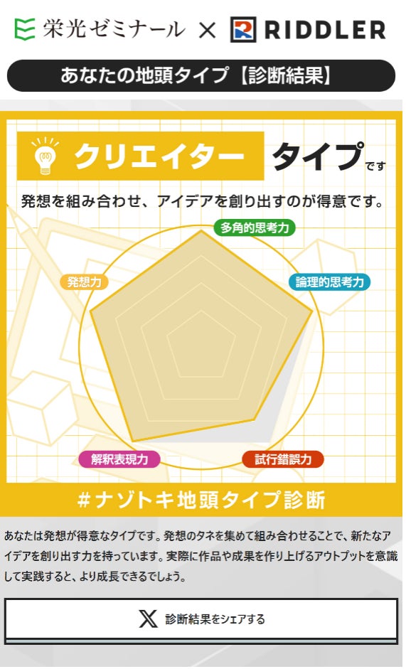 【栄光ゼミナール×RIDDLER(リドラ)】大手進学塾と謎解きクリエイター集団の初コラボ企画「ナゾトキ地頭タイプ診断」を1月20日公開