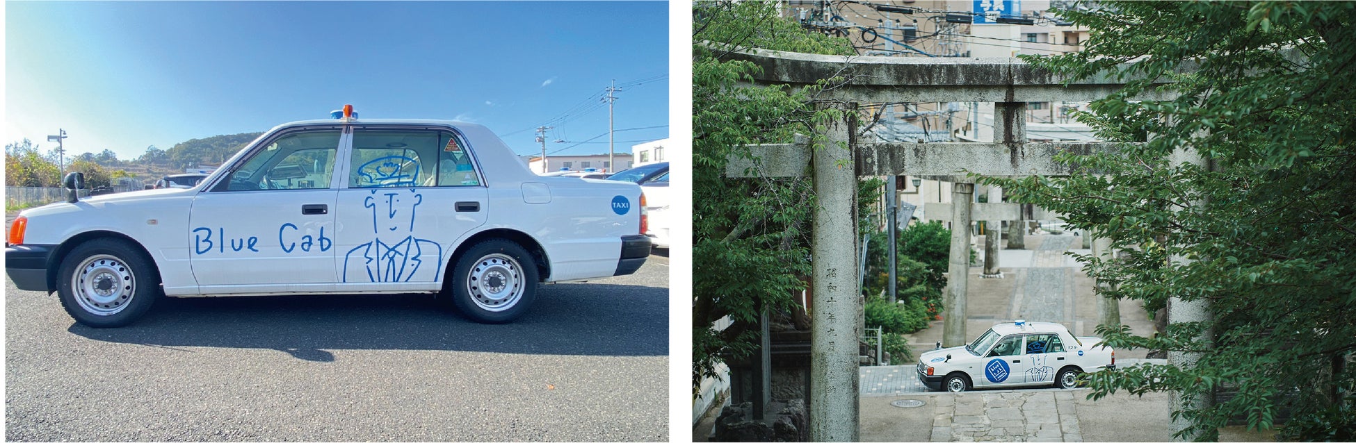提携するタクシー会社は、マツダモビリティ佐賀のグループ会社である、アーティスト長場雄のラッピングタクシーが魅力的な「ブルーキャブ」。空港では、タクシードライバーが陶々亭専用のご案内ボードで、丁寧にお客様をお出迎えし、陶々亭までアテンドします。