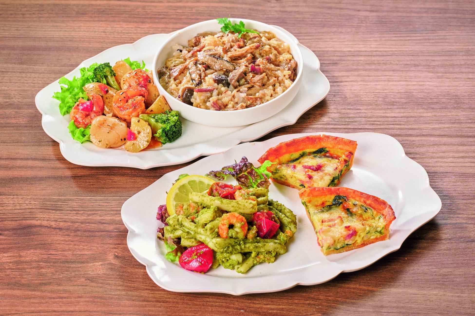 チーズのコクあるキッシュにはじまりハーブの香り豊かなシーフードグリル料理、ジェノバソースが美味しいパスタにきのこの食感とポルチーニ香るリゾットまで。ワイン好きにはたまらないセットです。