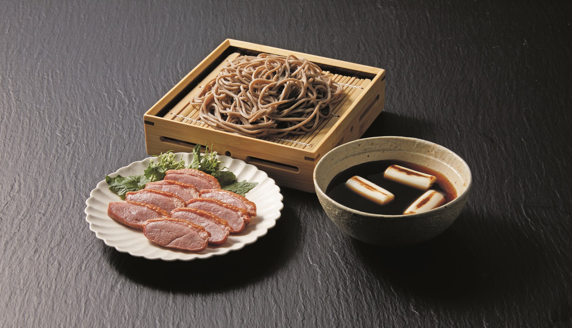 あらかじめスライスした調理済みの鴨肉と五割そばを、鴨だしが香るつけ汁でお召し上がりください。京都の料亭が監修する夏の味覚「冷やし鴨せいろ」をお楽しみください。