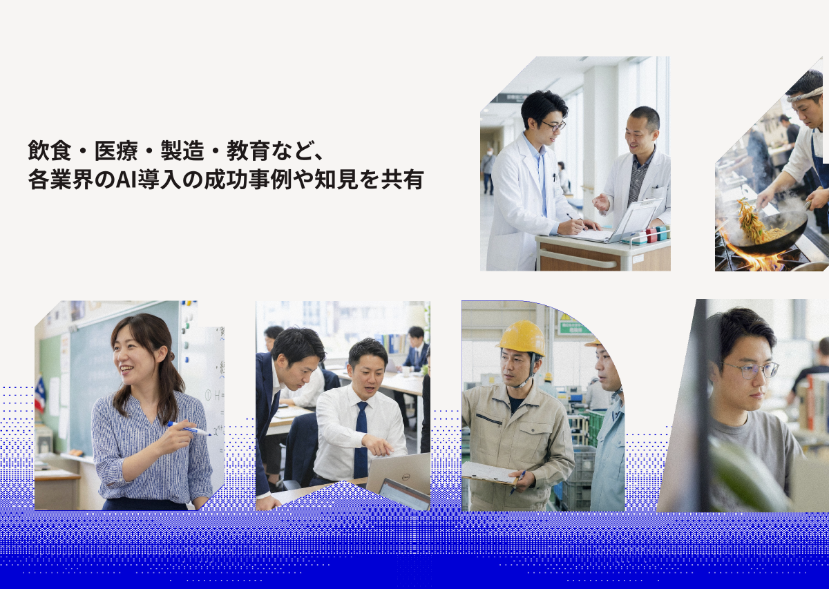 飲食、不動産、広告代理店、社会福祉、ITスタートアップなど、検証済みのAI導入の成功パターンを共有。パートナー企業は自社の得意な業界に合わせた導入提案を、ゼロから設計することなく即座に開始できます。