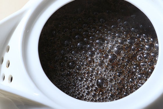 ⑤ジャンピングが終わるまで蒸らす。細かく切ったタイプの茶葉で3分、形がそのまま残るタイプの茶葉で5~6分が目安。しっかり蒸らすことで茶葉から豊かな香りとコクを引き出せる。