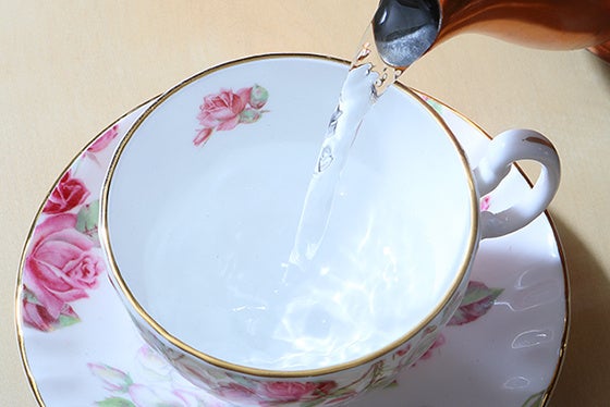 「ジャンピング」とは、 ティーポット内で起こる茶葉の上下運動のことです。 必要な条件は、お湯の中に十分な酸素があることと、お湯に対流が起きるほどの高温であること。 これにより、茶葉がまんべんなくお湯に混ざり、 「味」「水色」「香り」ともに文句なしの紅茶が抽出されます。この「ジャンピング」があることによって、紅茶が美味しく入れられます。