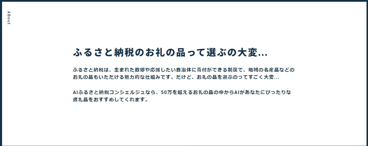 そこで当社は、年収や寄付額に関係なくお礼の品(返礼品)選びをサポートするコンシェルジュサービス「AIふるさと納税コンシェルジュ」の開発に着手。ChatGPTが豊富な商品ラインナップの中から、あなたの好みにあわせたお礼の品(返礼品)を提案します。