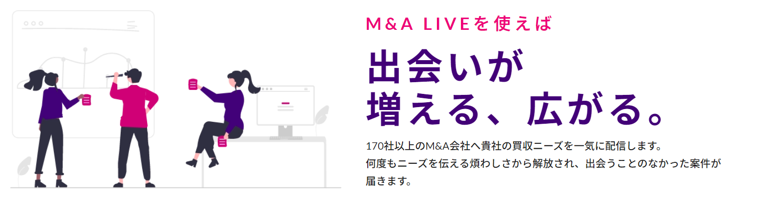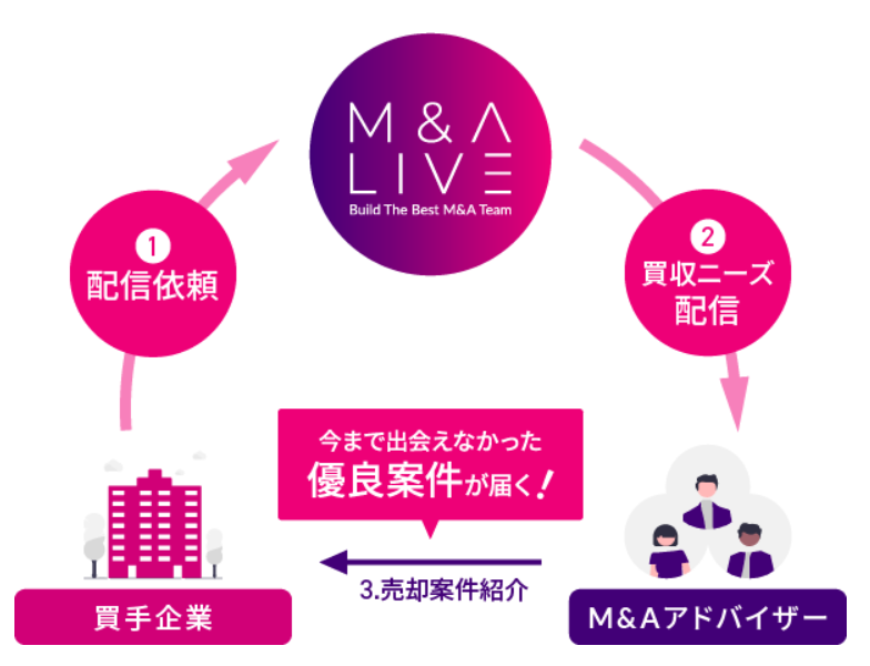 貴社買収ニーズを420名のM&Aアドバイザーへ配信できるサービスです。
