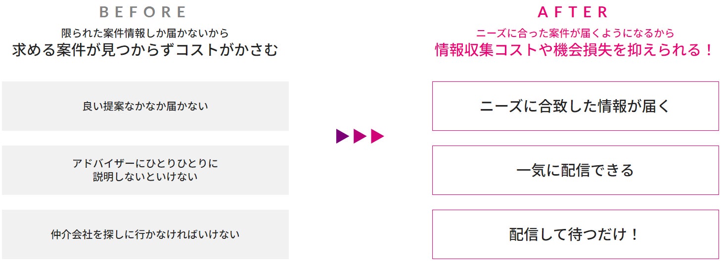 煩わしいネットワーク管理も不要になり、効率的かつ網羅的に案件収集が可能です。