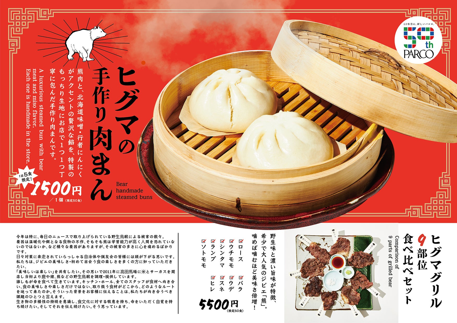 北海道で駆除された熊肉を使用した「ヒグマの手作り肉まん」「ヒグマの9部位食べ比べグリル」「熊味噌鍋」をジビエ居酒屋・米とサーカスで提供します。