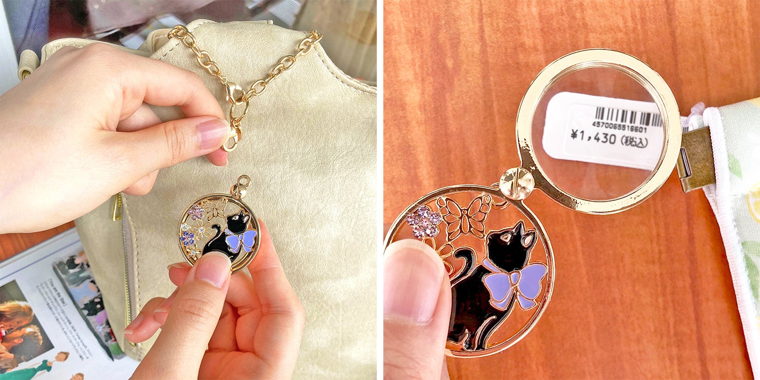 お買い物中に値札を見たい時、カフェで読書をしたい時、食事を注文する時のメニューなど見づらい文字でもチェーンから簡単に取り外して使えます。