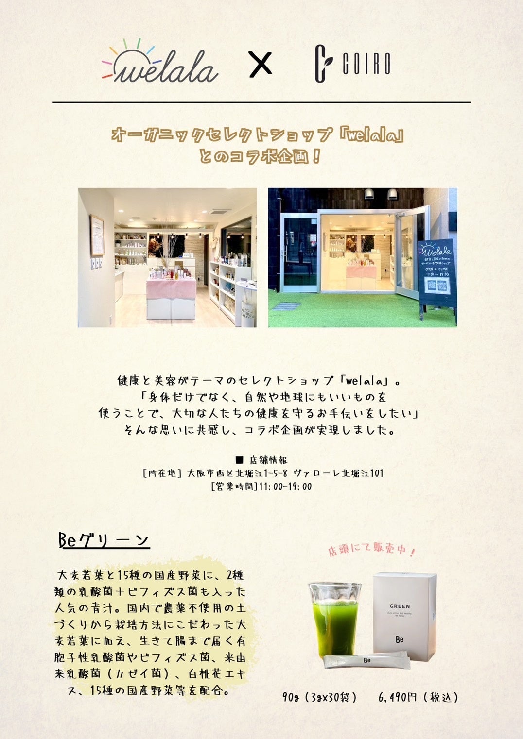 【welala×COIRO】大阪・堀江のオーガニックセレクトショップからのコラボ!栄養士監修のスムージー「めっちゃベジフル」が誕生