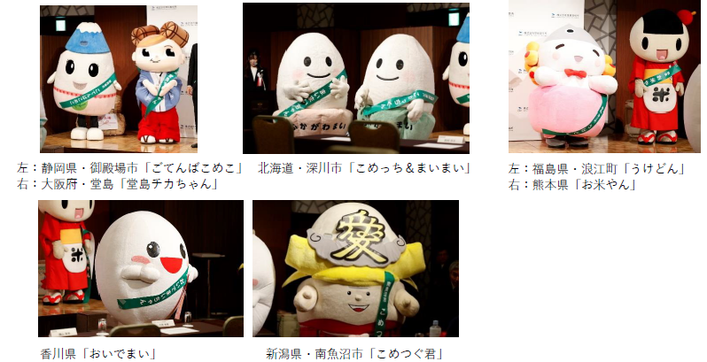 会場では、全国のコメをモチーフにしたマスコットの応援も
