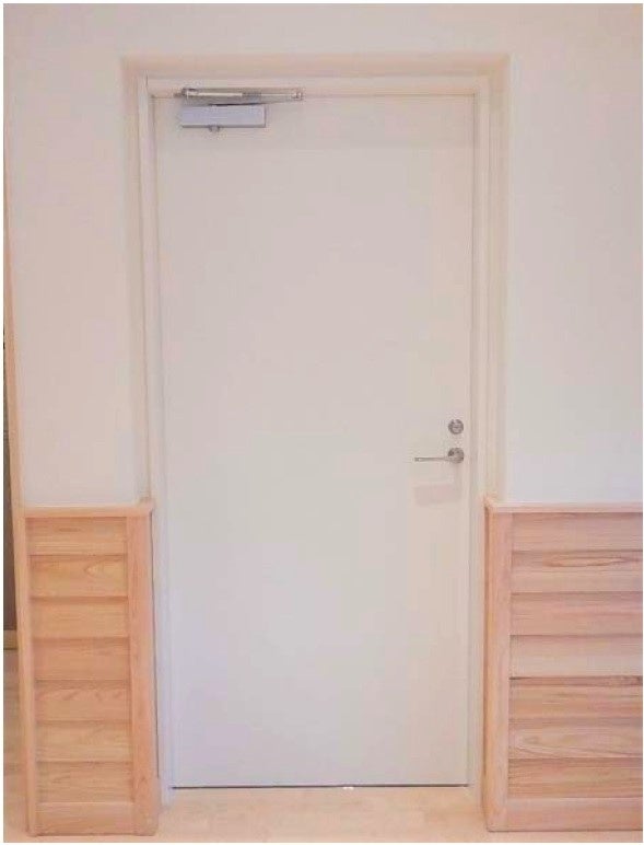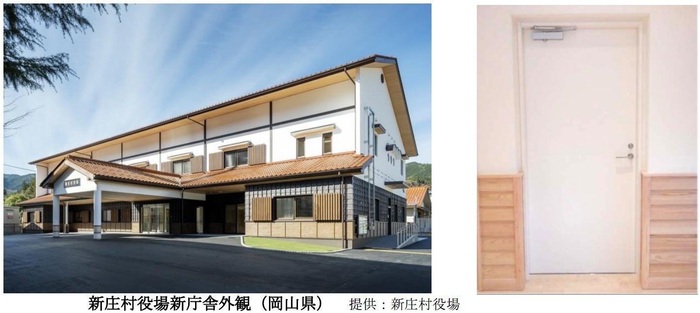 この度、新庄村役場新庁舎では、書庫に格納されている書類の火災による消失を防ぎたいとのご要望により、耐火書庫入り口扉として、「灼熱ガード」が採用されました。金庫室等の入り口扉には遮熱性に加えて防盗性を有した扉が要求される場合がありますが、今回の採用場所のように防盗性が必要でない書庫保管場所や文化財保管場所の入り口などには、「灼熱ガード」が適しています。