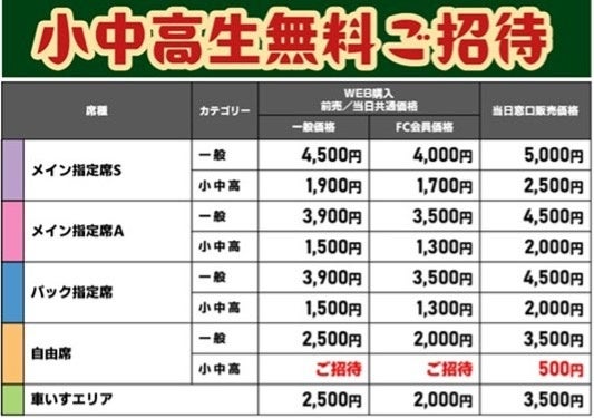 ・試合についての詳細情報、チケット購入方法はチームのHPよりご確認ください。