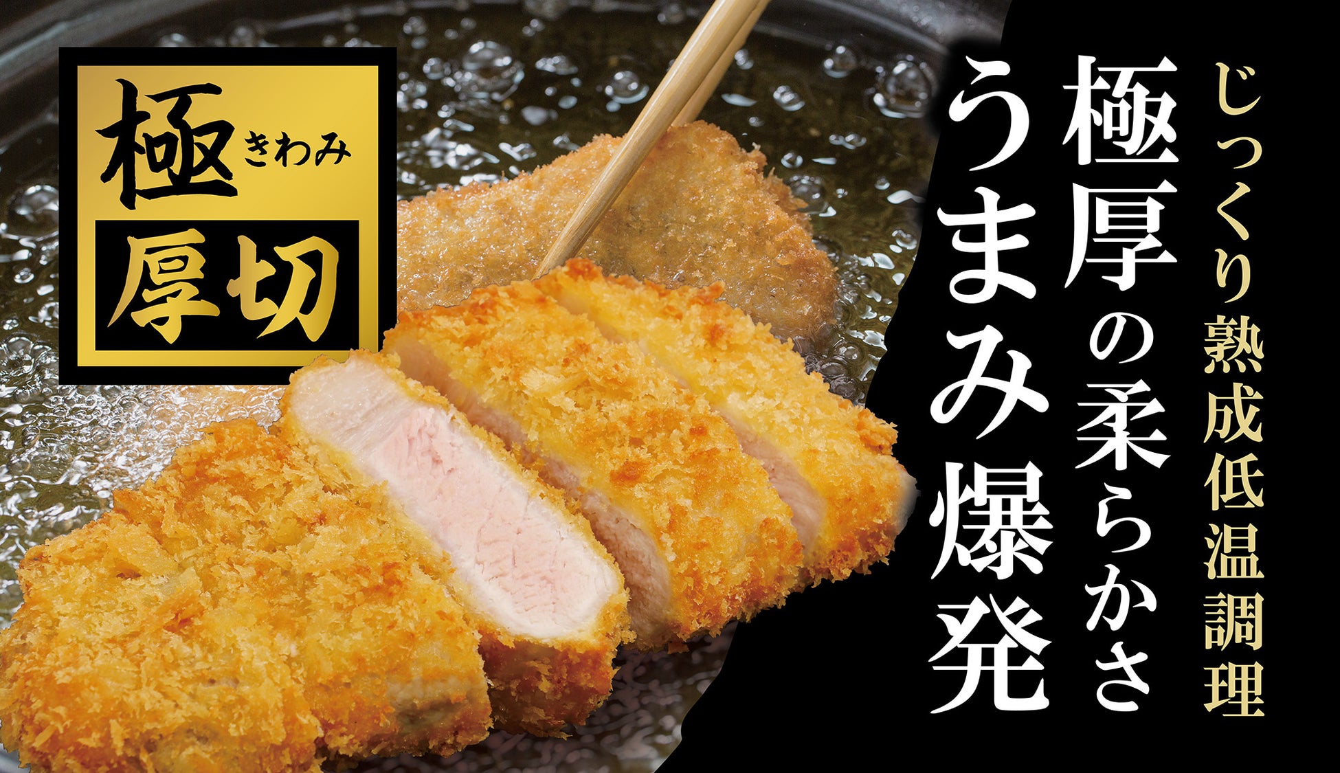 「厚さ約3cm にカットした上質豚ロースをじっくり数時間、熟成低温調理。