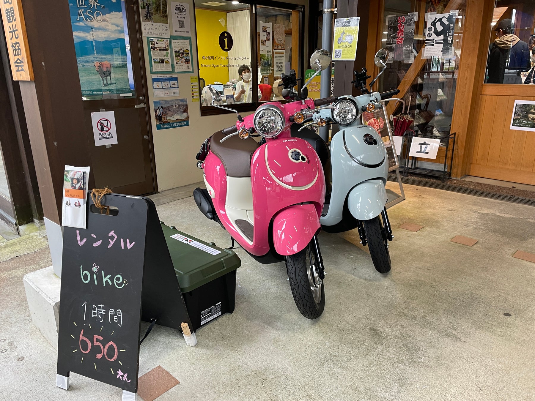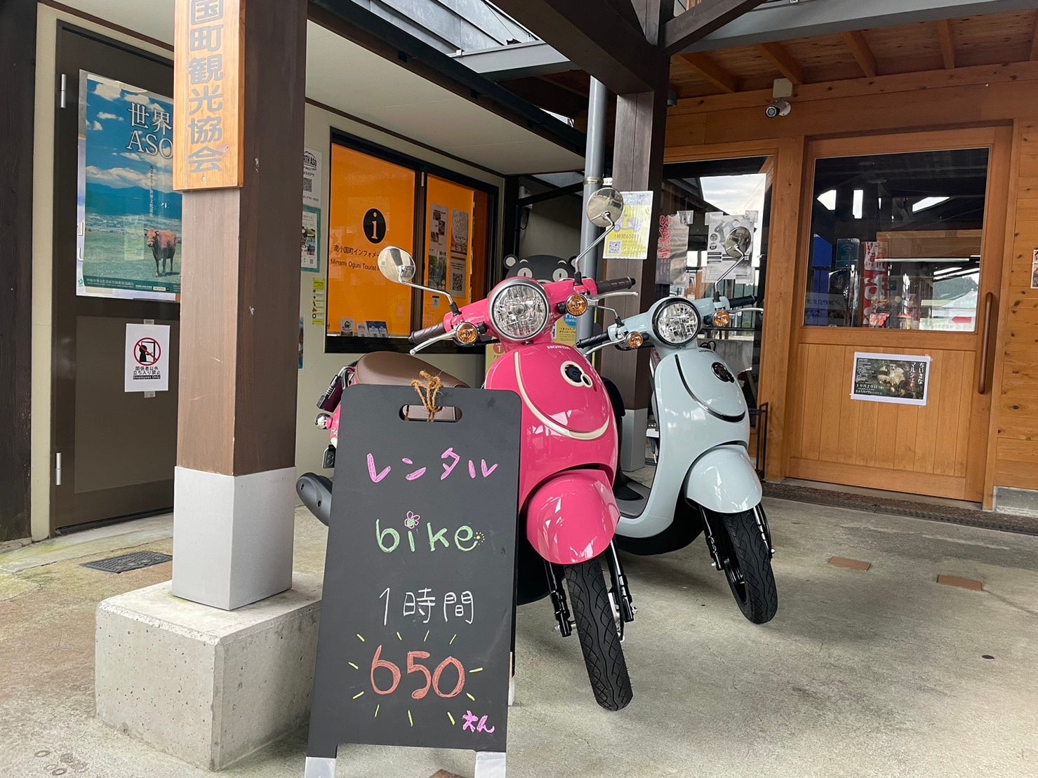 阿蘇地域において原付バイク(50ccスクーター)を活用し、無人で24時間貸出できるシステム構築を目指します。
