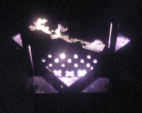 こだわり④携帯式焚火台に炎が透けてデザインが浮かび上がる加工を加えた。